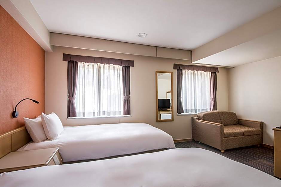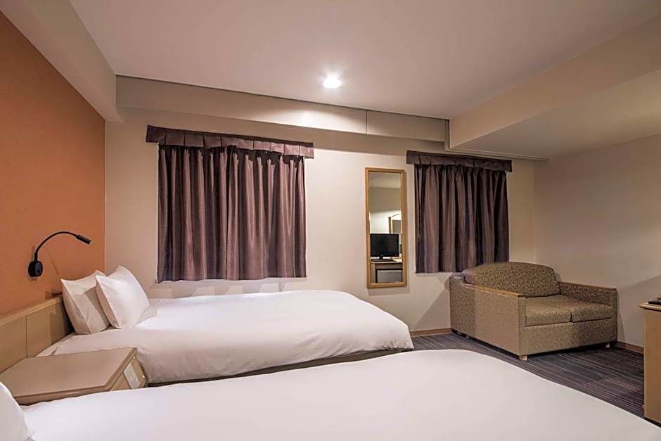 Standard Twin 3 pax (2 beds + Sofa bed) non smoking is 237 square feet and includes 2 single beds 80-130 width plus a sofa bed plus slippers.